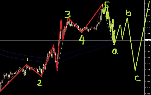 今天從高位很快拉出一個(gè)推動(dòng)結(jié)構(gòu),這是很明顯的后面調(diào)整浪要以鋸齒型調(diào)整出現(xiàn),也就是如圖所示,后面的一波C浪很快,而且幅度很深,至少1.2740的黃金位置!