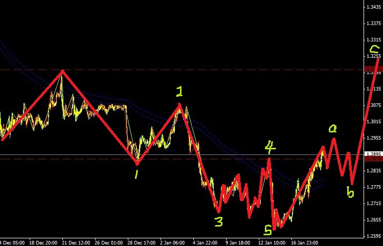歐元這一輪的下泄中出現了一個終結楔形,這樣的空頭終結楔形如果直接抄底需要的是把握和勇氣,非常不建議直接迎頭進場,所以要等破掉左肩也就是4浪的頭部,在上次的歐元分析中4浪的位置出現了一個多頭五波,看做朝五,現在演變成強B,朝五的失敗率中包含了強B,這是預測和交易過程中需要注意的!