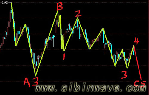 波浪理論實盤推演滬鋅在高位的一個空頭朝五起到了非常正確的引導作用,在2浪部位是很好的進場做空時機,在行情走到這里,C浪3走得很爛,并不標準,一四重疊,然后圖解中的4浪位置又破掉了C浪1的底部,這種2此一四重疊是提醒我們,這里的空頭本意只不過是終結楔形,更重要的是給予了后面的指導操作: