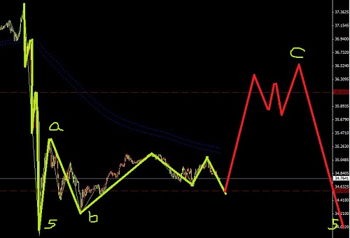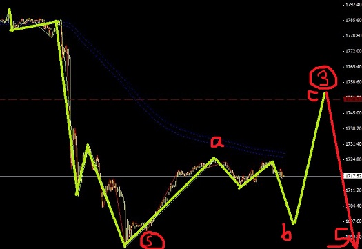 從波浪理論圖解看黃金正處于B浪下跌之中,后面還有一個C浪上漲,這個C浪也能有500多點(diǎn)的行情,白銀和黃金的走勢稍有不同,很明顯白銀相對黃金要弱一些,慢一些,眼前離做空還有點(diǎn)距離,目前先做多吧!