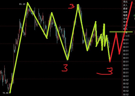 波浪理論圖解仔細看美元指數走得真是一對亂碼,雖然很亂但多是個橫盤整理,沒法數多是個3-3-3的雙鋸齒型調整,這種走勢如何操作有很多講究,因為行情還沒有走完,提前判斷的話排除市場在這里會出現三角形調整,然后博市場如圖解所示出現突破,開始做歐元或者澳元的空頭。