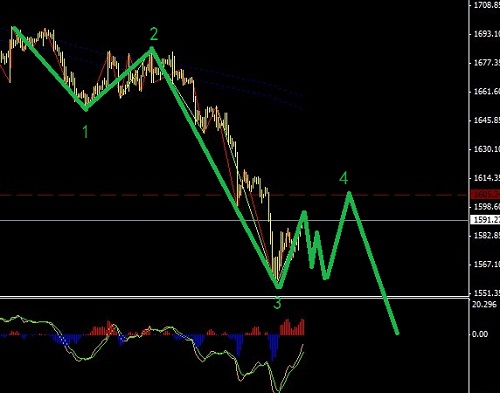 眼前值得操作的剩下一個5浪行情,不要小看,仍然有800點左右的行情,破掉低點還可以繼續滑出一點零頭,操作手法可以采取回調進場,前提是市場在這里休息更多行情也就是波浪理論圖解所示,1605.3附近是一個重要的回調進場位,止損可以放在1618.7一線!如果市場直接拉高需要采取右側進場!