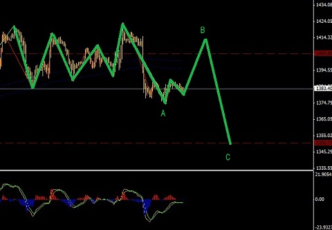 先生今天的反彈是鋸齒型調(diào)整,1421-1365看成是下跌1浪,現(xiàn)在2浪反彈?