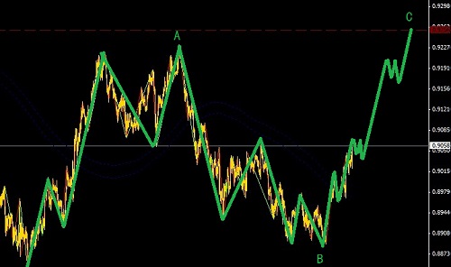 因為澳元是2013年非常賺錢的一個幣種,所以每次的央行利率決議聲明都非常重要,周二的上漲構成了波浪理論圖解中一個強勢上漲,現在看來已經是中繼引導楔形中的第3浪,也可以是一個終結楔形,周三上午重量級數據第二季度GDP公布,決定了這里是要繼續上行還是重新下跌。