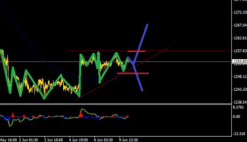 觀察黃金周K圖的大致感覺,從最低1180開始的對應震蕩格局,還沒有結束,所以,目前的震蕩第四大波仍會繼續探底,預計目標1200.0。