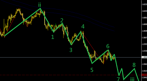 英鎊的天圖是在一波流的第3波里面,下面的圖解是最近的1小時級別1.6180高點下來,走完ii浪之后市場展開了一波主升浪的行情,也就是3浪3區(qū)域,顯然英鎊這一波還沒有跌到位,細數(shù)現(xiàn)在正在第6波里面,后面的還有2波下跌的行情,目標位1.5450,就近的止損位1.5740!