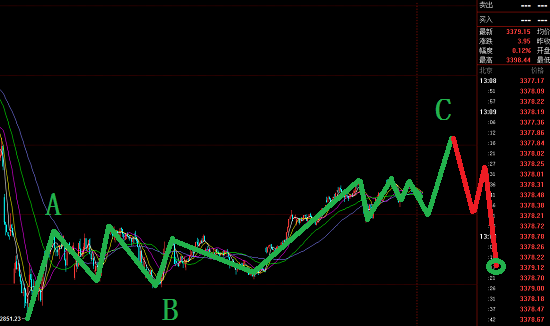 向上的A浪級別,后面有回調(diào)的B,向上的C;