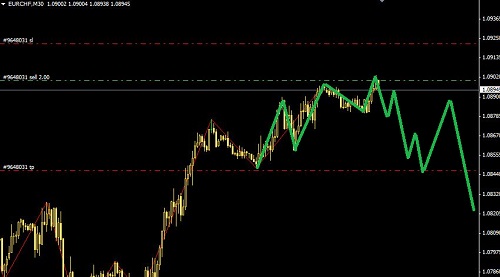 在做美元多頭之際,當(dāng)市場出現(xiàn)交叉盤的短線機會時依然不會放過,歐元兌瑞郎在30分鐘出現(xiàn)了一個小級別的終結(jié)楔形,喜歡做短線的可以玩!