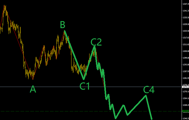 下面的波浪理論圖解是非常清晰的呈現了波浪理論的魅力,C浪3就在你眼前,切到30分鐘圖里面,現在剛剛占在C3的第5浪里面,后面還有6-7-8-9波行情沒有走完,大家可以用自己的技術去逢高空短線+中短線,一直空到后面3浪5區間的1250一線;