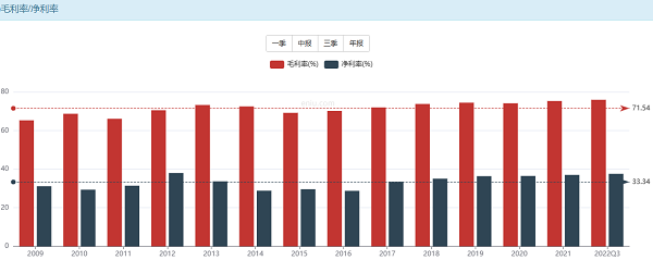 五X夜的歷年凈利潤和毛利率非常平穩的增長,盈利能力非常穩定: