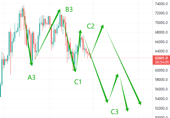 比特幣在天圖運(yùn)行了清晰的多頭5波之后,現(xiàn)在多頭突然變得頹勢(shì),乏力,波浪理論圖解目前的市場(chǎng)剛剛運(yùn)行在C浪2轉(zhuǎn)空頭C浪3的區(qū)間里面,想抄底的投資要認(rèn)真調(diào)配倉位管理,做好策略平衡