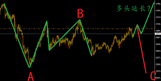 黃金的實盤在2693的位置空了一單并設好平保,市場可以在這里繼續再創一次新高,然后開啟變盤,而這個變盤是可以向下走出C浪行情的,也就是在這個位置順勢做多的粉絲如果不想做空,就讓賬號歇一會,讓市場多運行一些行情在決定后續的操作策略,空倉不會讓你賠錢。
