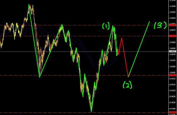波浪理論實盤推演澳元在前面走了一個非常大的A-B-C調整浪,然后出現了一個大的V浪1,現在市場準備出現一個鋸齒型調整的V浪2,后面要迎接的是我們的V浪3,這里要注意的是,這里的空頭2浪也是值得做了,因為也有400點行情左右,而且很容易出現一波流。