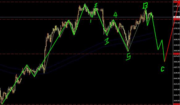 波浪理論實盤推演黃金在低位一直都在不斷的呈現創新高不創新低的態勢,眼前的調整浪中出現了一個空頭朝五,容易給我拉一個回調下跌行情,這種中線機會在1677.5的低位時,也就是C浪破掉A浪底時不要放過,進場持有至少1200點的多頭行情。